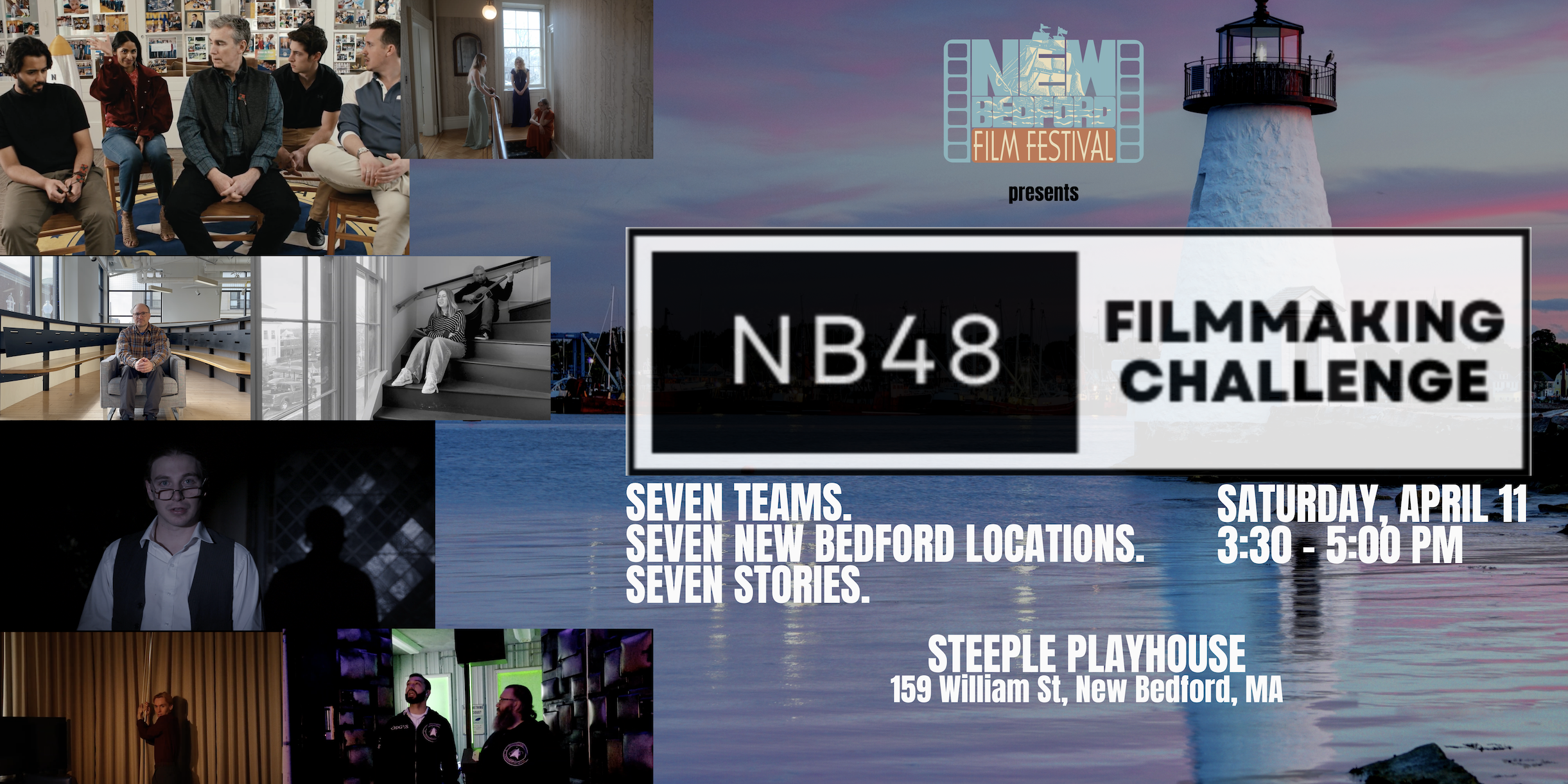 The completed films created during this challenge will be screened at the New Bedford Film Festival on April 11 from 3:30-5pm at the Steeple Playhouse and have the chance to win awards such as Best 48 Hour Film, Best Directing, Best Acting, Best Use of a Location, Best Story, and Best Editing.
